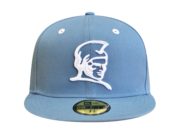 R DIVISION – FITSTRIKE EXCLUSIVENEW ERA 59FIFTY FITTED100% POLYESTERFADED BLUEMETALLIC SILVER NE FLAGSTANDARD FIT, SIZES 7-8