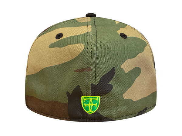 R DIVISION – FITSTRIKE EXCLUSIVENEW ERA 59FIFTY FITTED100% COTTONWOODLAND CAMO / GREEN - ORANGEWHITE NE FLAGSTANDARD FIT, SIZES 7-8